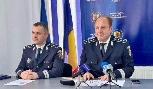 PARTICIPAREA ȘEFULUI INSPECTORATULUI DE POLIȚIE JUDEȚEAN DÂMBOVIȚA, COMISAR-ȘEF DE POLIȚIE POLEXE ION-VIOREL, ALĂTURI DE ȘEFUL SERVICIULUI RUTIER, COMISAR-ȘEF DE POLIȚIE TEODOR ALEXANDRU ȘTEFĂNIȚĂ, LA CONFERINȚA DE PRESĂ ORGANIZATĂ LA DATA DE 13 MARTIE 2025