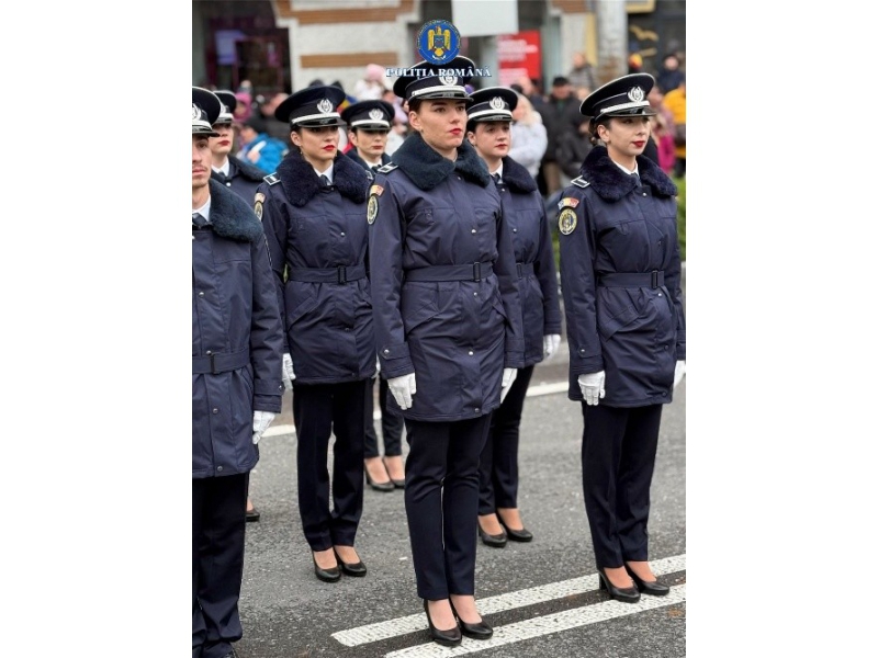 Polițiștii dâmbovițeni au fost prezenți în cadrul paradei organizate în centrul municipiului, un pluton format din 15 agenți și un ofițer defilând alături de celelalte structuri.