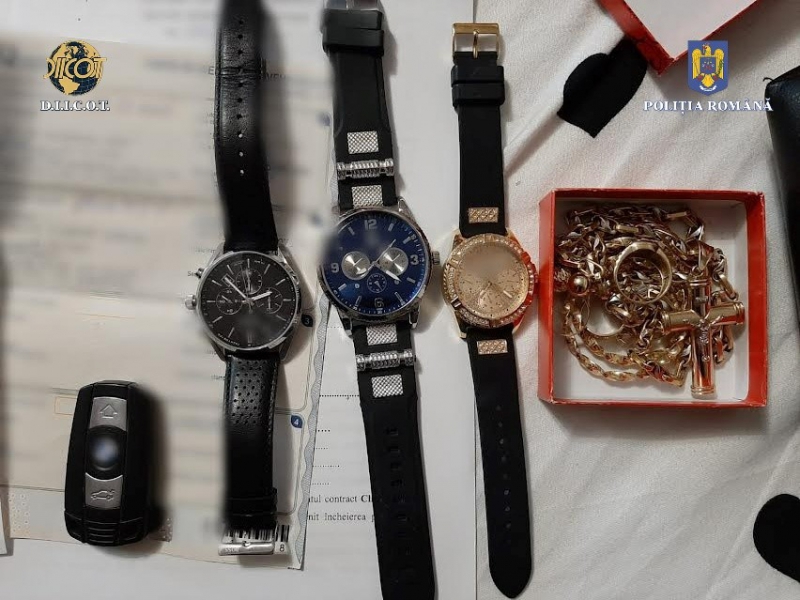 În urma perchezițiilor, au fost indisponibilizați 128.300 de lei, 2.300 de lire sterline, 26.500 de euro, 6 laptop-uri, 32 de telefoane mobile, 2 pistoale airsoft, o pușcă cu aer comprimat, un pistol cu gaze, bijuterii din aur, ceasuri de lux, o sabie ninja, un cuțit de vânătoare și înscrisuri, iar, față de 13 autoturisme, au fost dispuse măsuri pentru a fi ridicate.