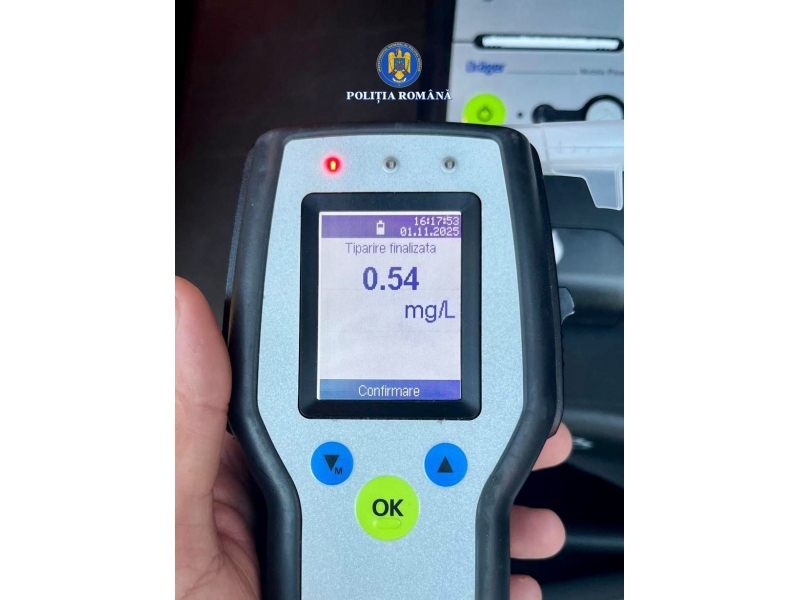 Polițiștii au procedat la testarea conducătorilor auto cu aparatul din dotare, iar în cazul bărbatului a rezultat o valoare de 0,54 mg/l alcool pur în aerul expirat.