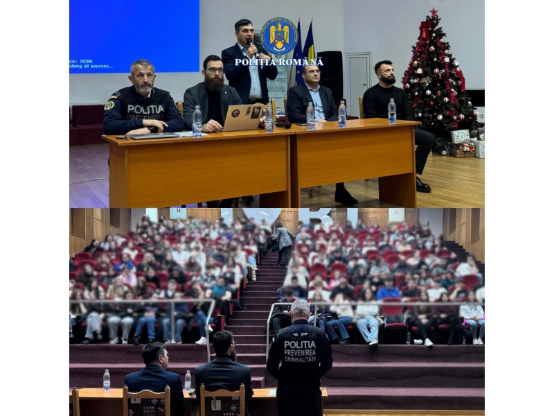 La data de 8 decembrie a.c., polițiștii din cadrul Compartimentului de Analiză și Prevenire a Criminalității din cadrul Inspectoratului de Poliție Județean Dâmbovița au desfășurat o activitate preventivă în cadrul programului de prevenire a siguranței în mediul online, la Liceul de Arte „Bălașa Doamna” din Târgoviște.