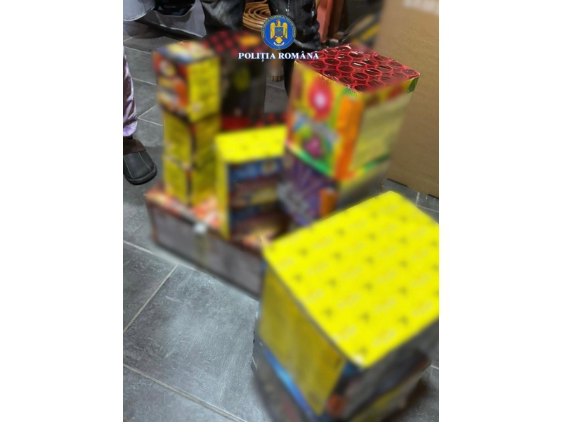 În urma perchezițiilor domiciliare efectuate, polițiștii au descoperit și indisponibilizat aproximativ 450 de kilograme de articole pirotehnice (baterii de artificii din categoriile F2, F3), în valoare de 10.000 de lei.
