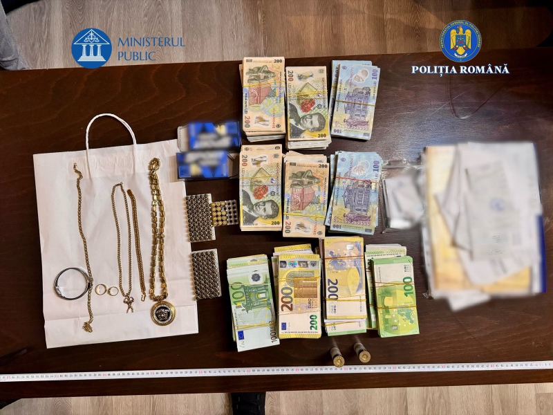 În urma perchezițiilor, au fost ridicate, în vederea continuării cercetărilor, 3 terminale mobile, 43.000 de euro, precum și mai multe documente și înscrisuri.